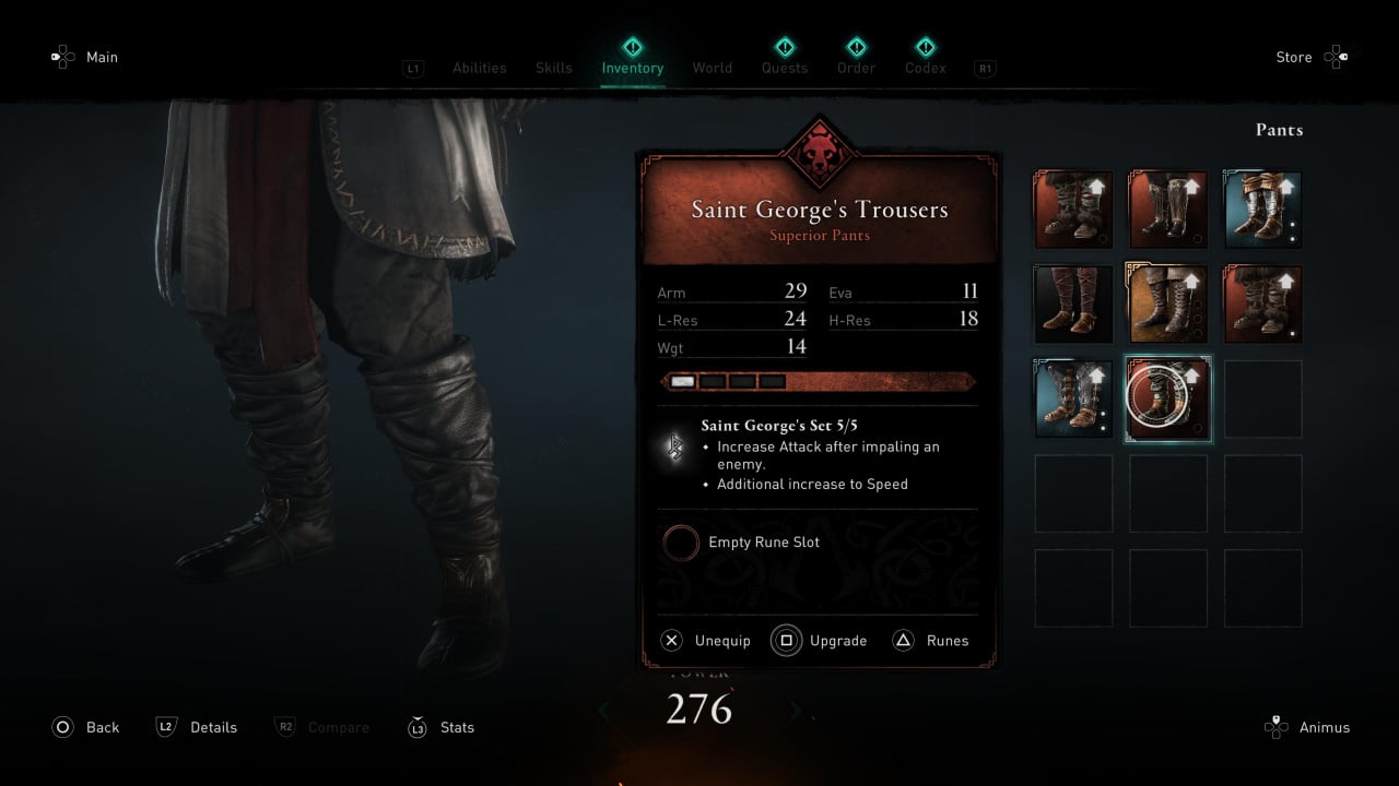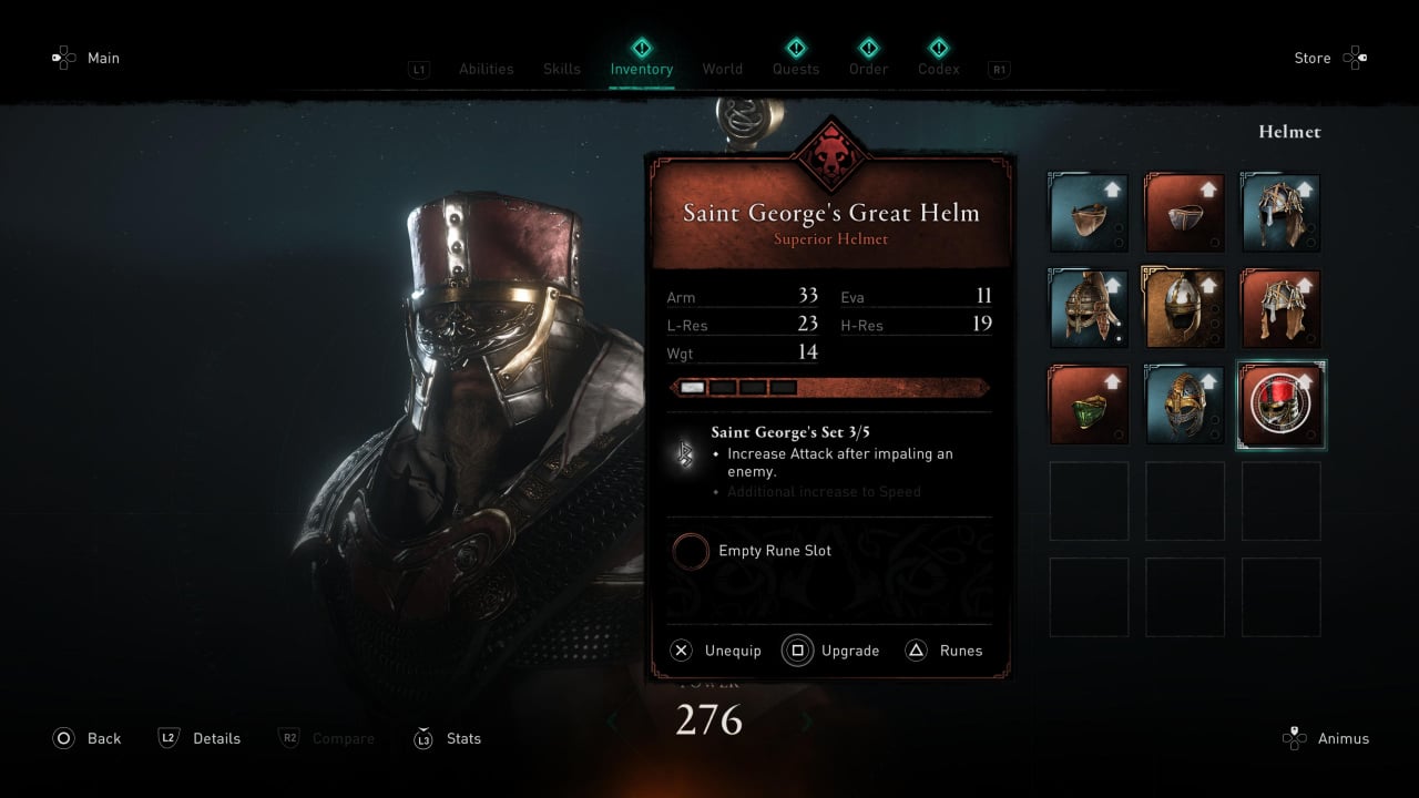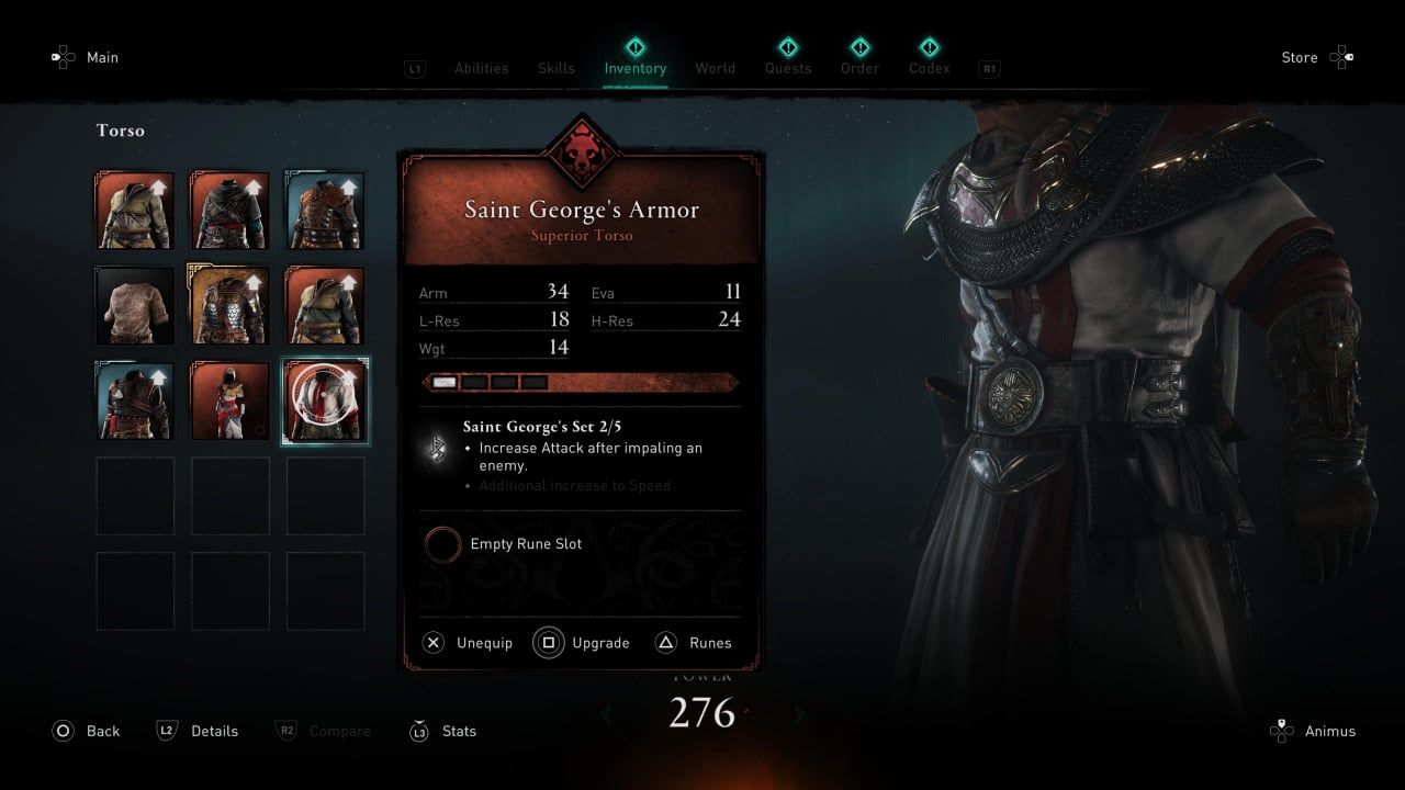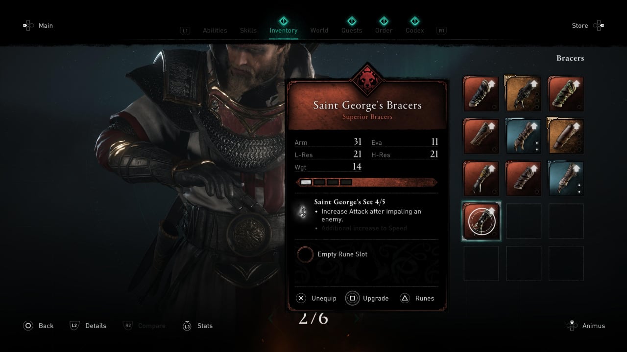 Usefulness: The perks on Saint George's Armor set only work with weapons that have specific impaling attacks: great swords and spears. But if you enjoy using those weapon types, then this is a great set. A boost to both damage and speed after landing an impaling blow is generous, especially if you can weave those into your combos as often as possible. Specialised, but effective.