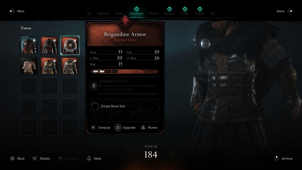 Usefulness: The Brigandine Armor set is very straightforward and reasonably effective. Most combat encounters in Assassin's Creed Valhalla involve multiple opponents, and this set can help you tank through quite a bit of damage. However, more advanced players who don't get hit as often probably don't need the armor increase, and are better off going with a more aggressive set.