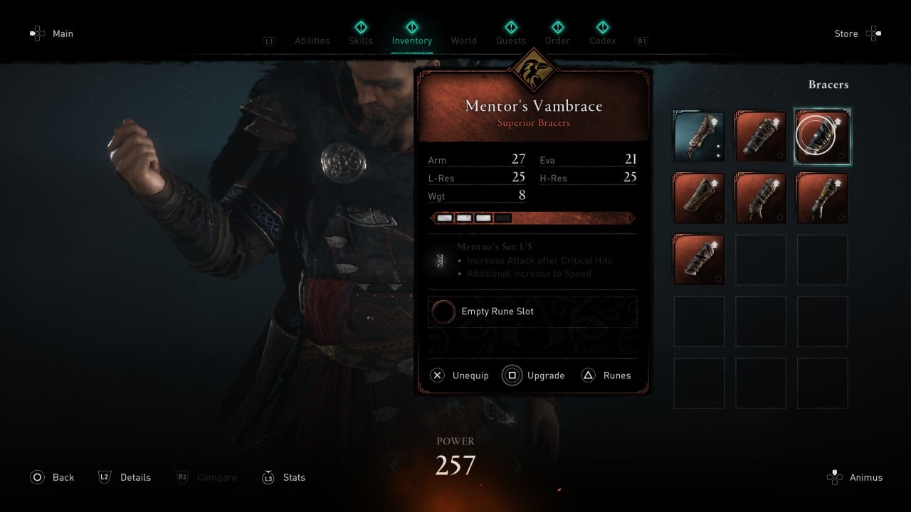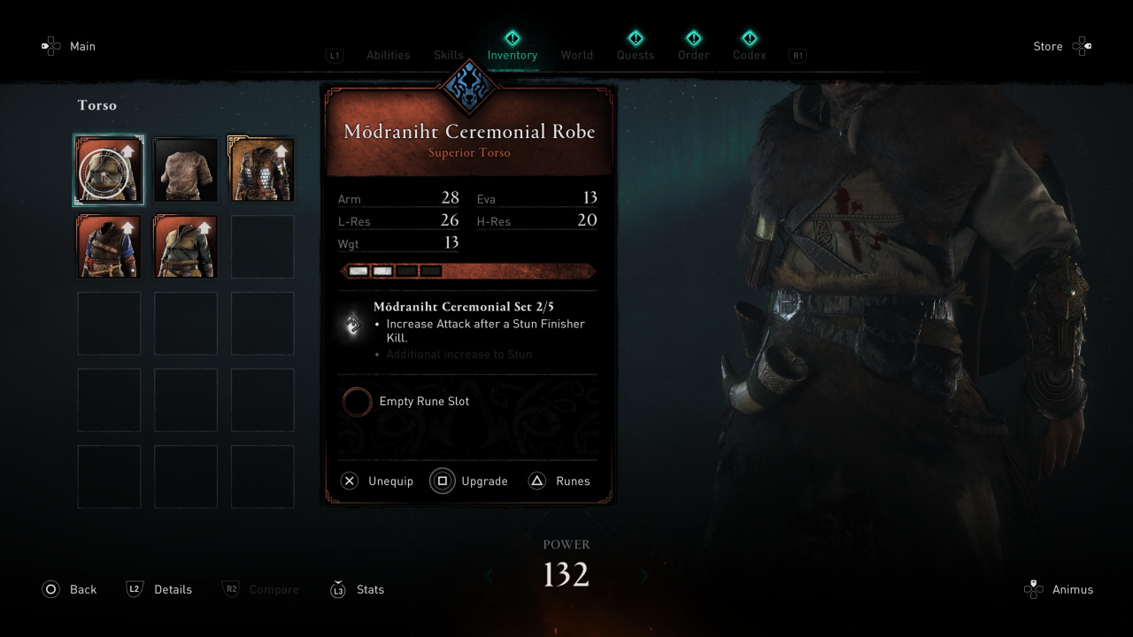 Usefulness: The Fallen Hero Armor set is one of the best sets in the game. Its stat boosts don't need to be triggered, which means that wearing this set instantly makes Eivor more powerful. The boosts themselves aren't massive, but they are noticeable.