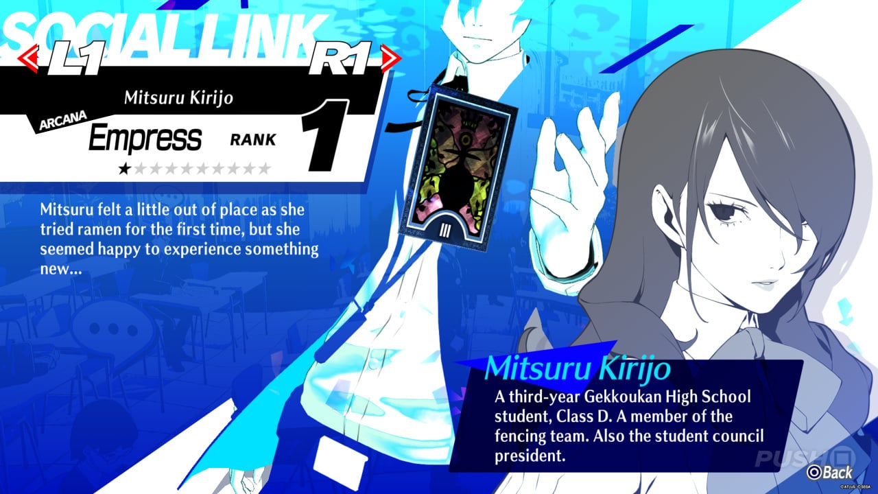 - Much later in the game, Mitsuru will become available as a potential Social Link