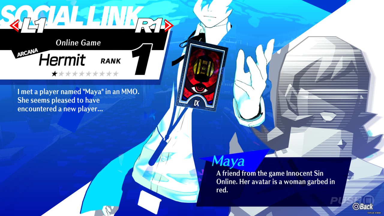 - Increase the Online Game (Hermit) Social Link to Rank 4, and Maya will mention "a man from TV" who hangs around Paulownia Mall at night